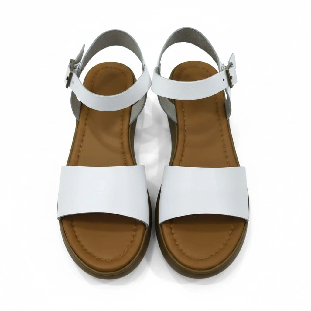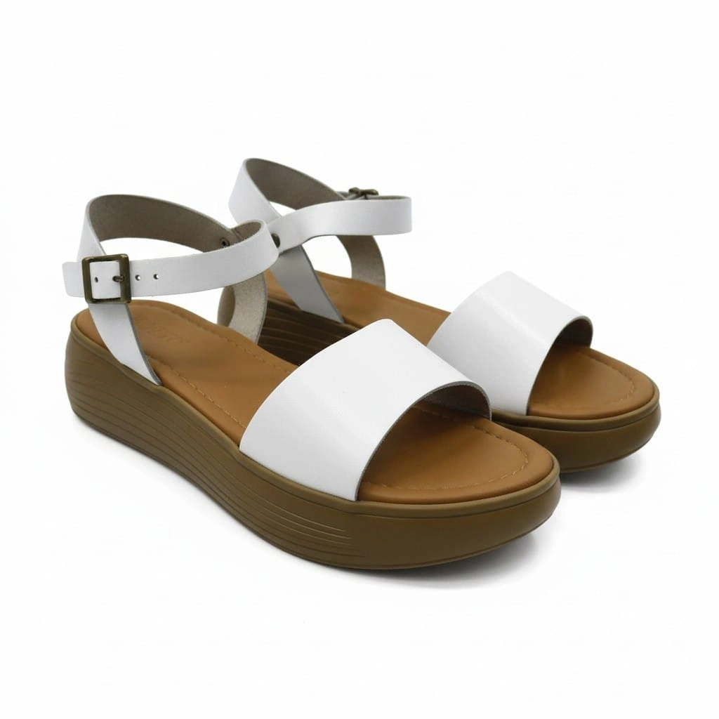 EFW %100 Hakiki Deri Beyaz Kadın Tek Bant Sandalet
