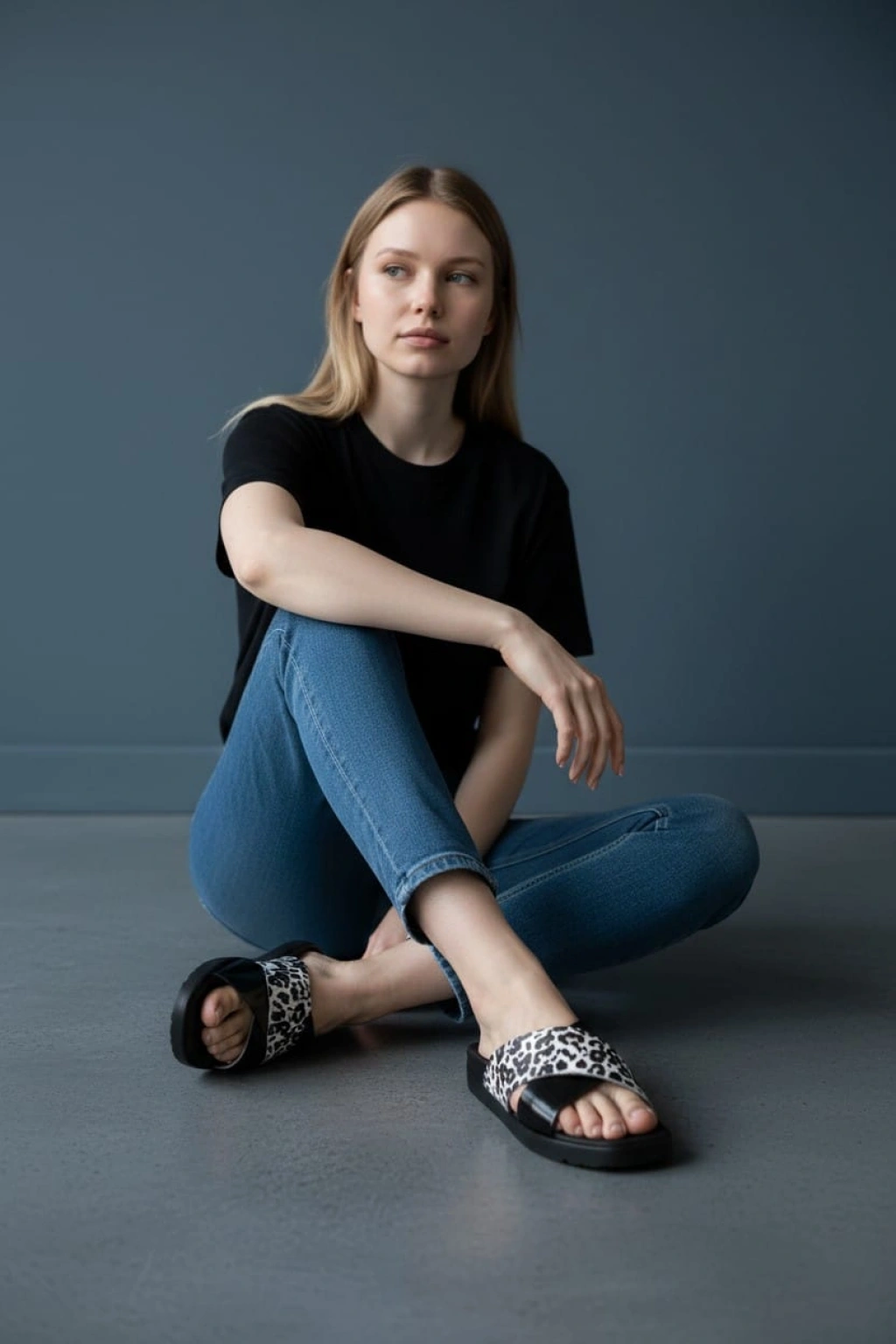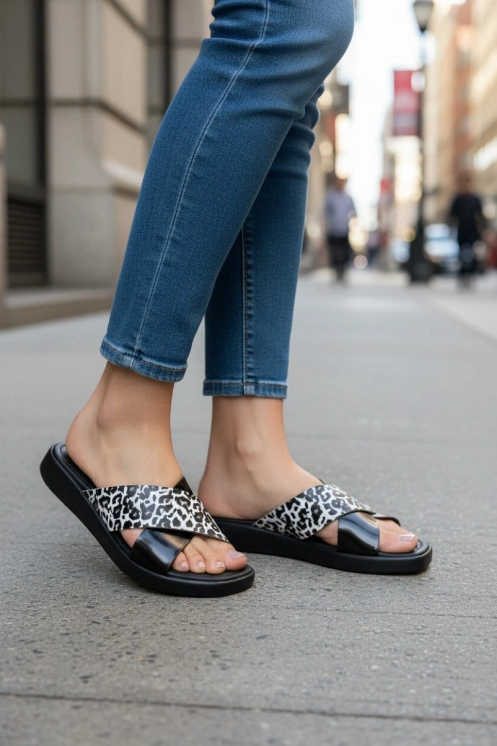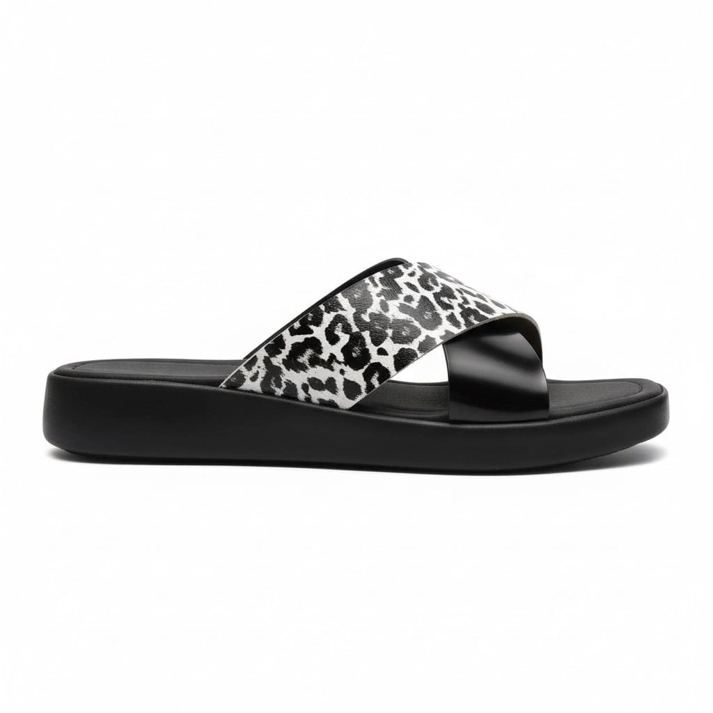 EFW %100 Hakiki Deri Çapraz Leopar Detaylı Kadın Terlik