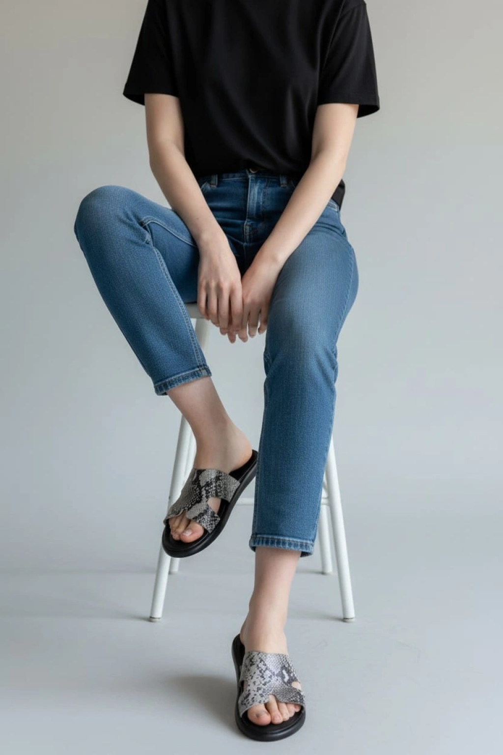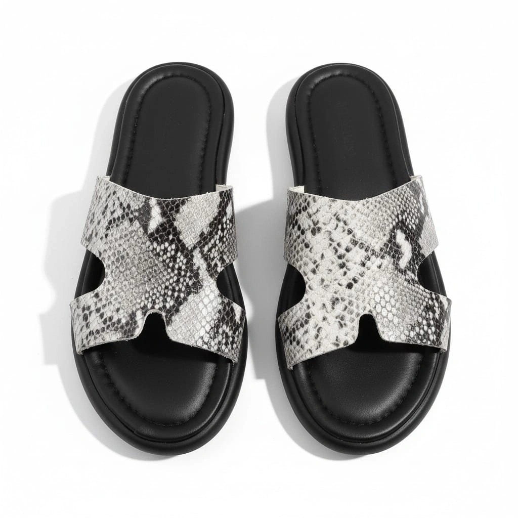 EFW %100 Hakiki Yılan Derisi Siyah Kadın Terlik