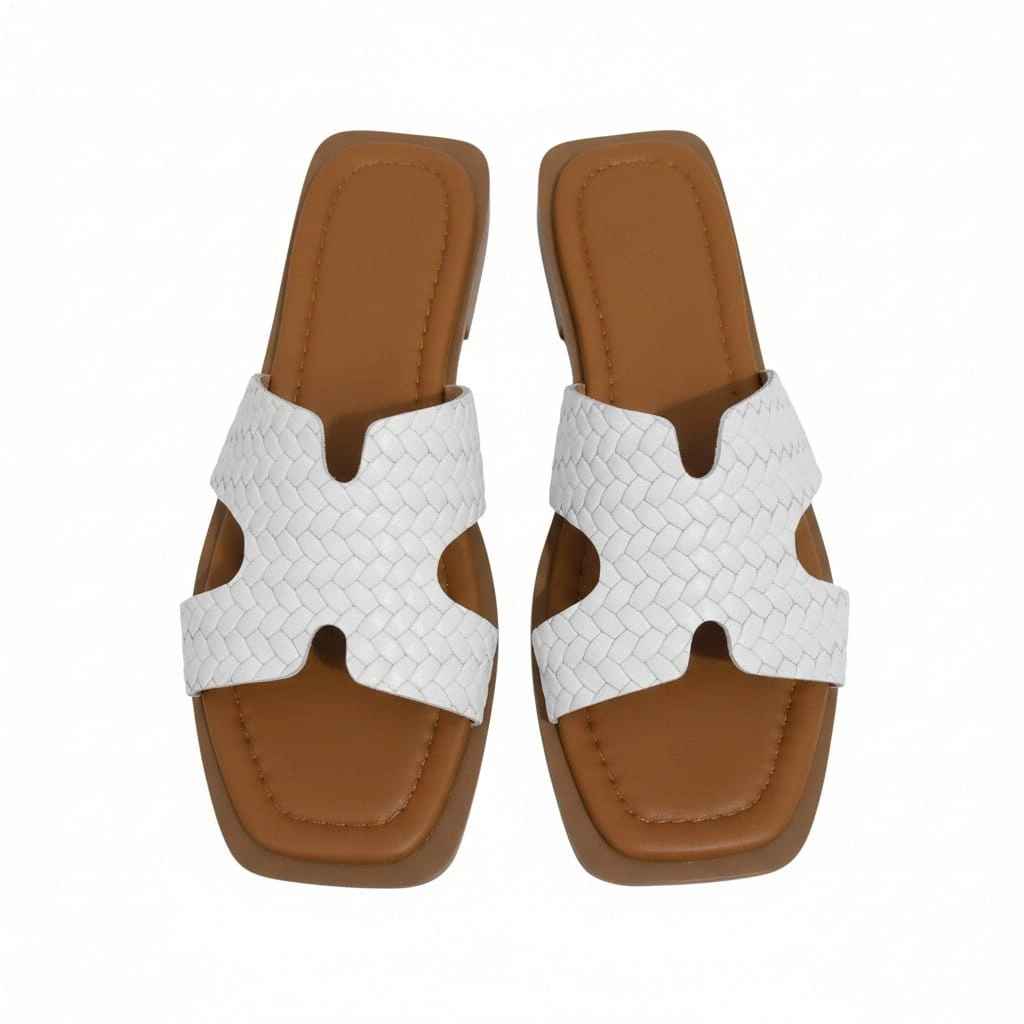 EFW %100 Hakiki Deri Beyaz Kadın Terlik