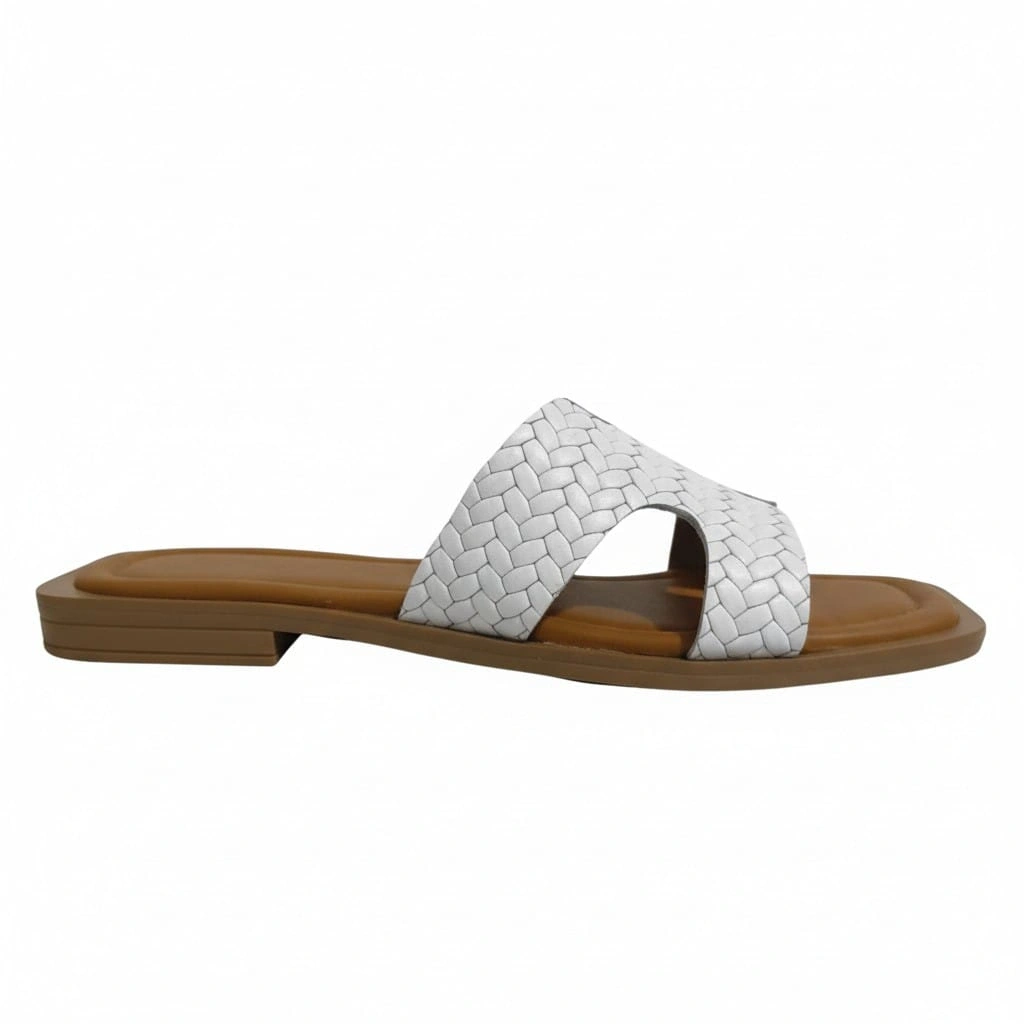 EFW %100 Hakiki Deri Beyaz Kadın Tek Bant Sandalet