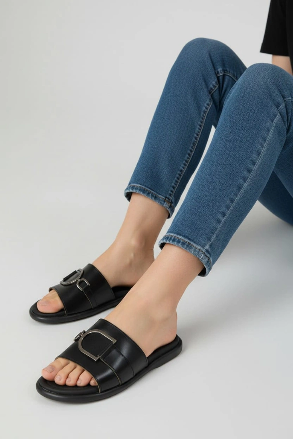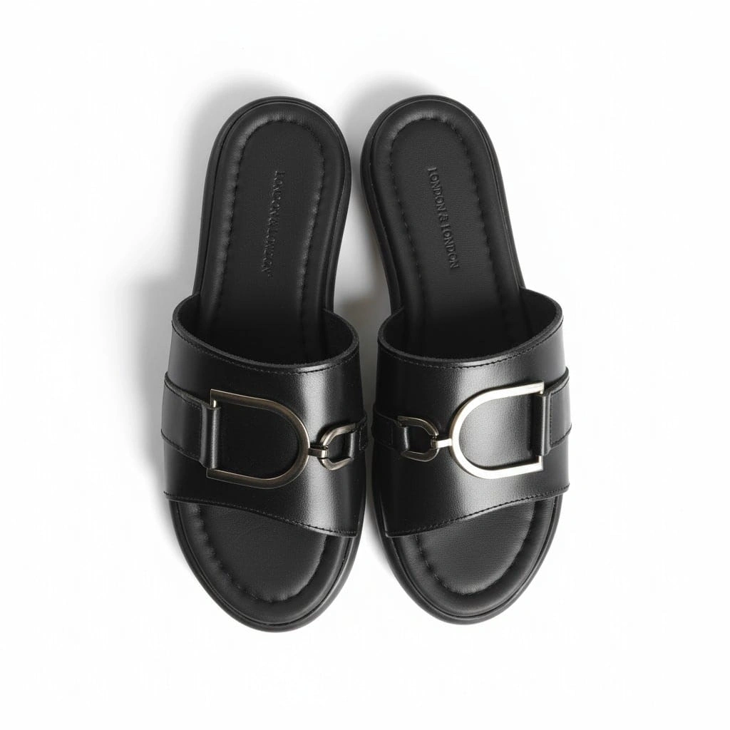 -%100 hakiki deri siyah tokalı kadın terlik, yaz aylarında rahatlıkla kullanabileceğiniz şık bir seçenektir.