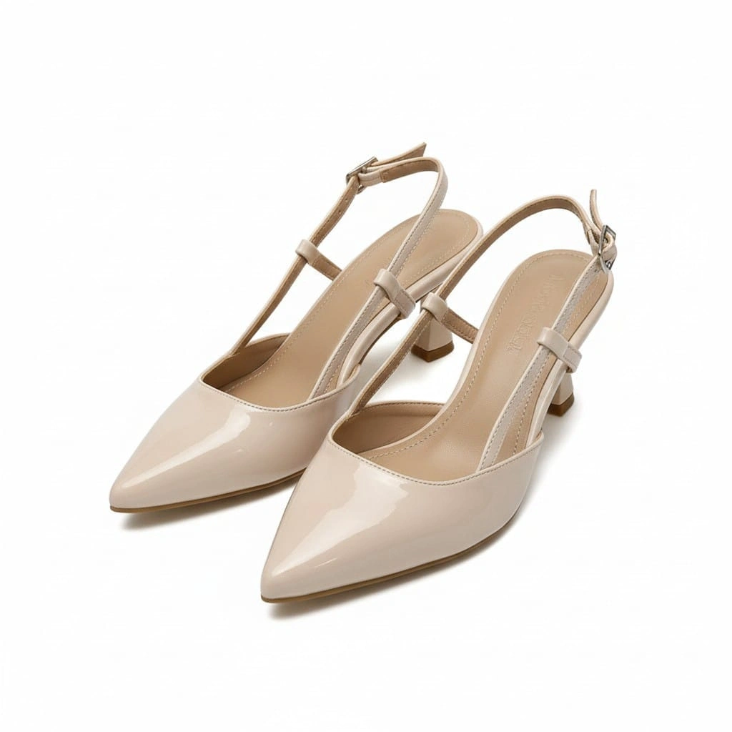 EFW Sivri Burun Bej Cilt Kemerli Kadın Ayakkabı