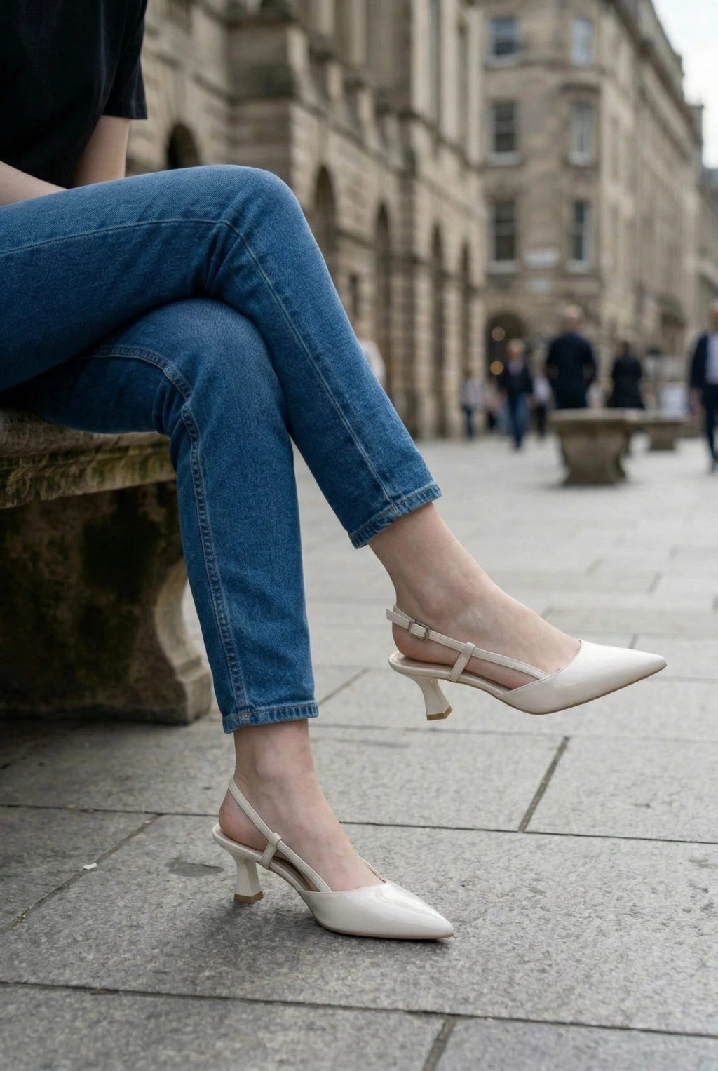 Cianna Önü Kapalı Arkası Açık Lastikli Klasik Topuklu Krem Ayakkabı