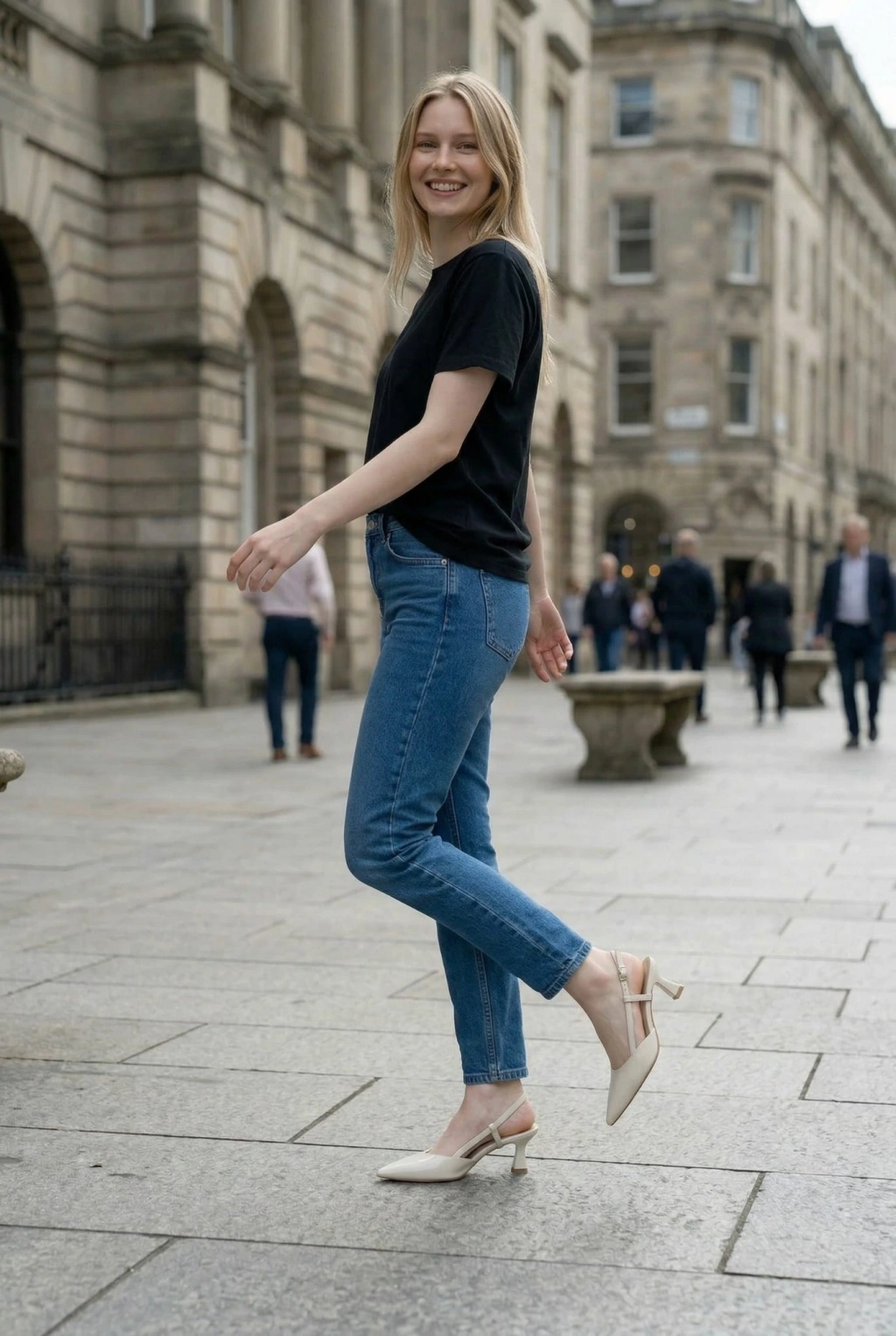 EFW Sivri Burun Siyah Cilt Kemerli Kadın Ayakkabı