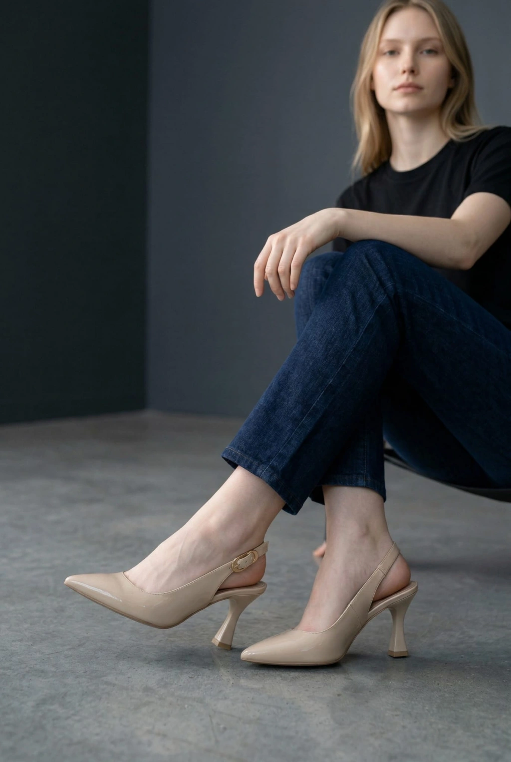 EFW Sivri Burun Bej Rugan Kemerli Kadın Ayakkabı