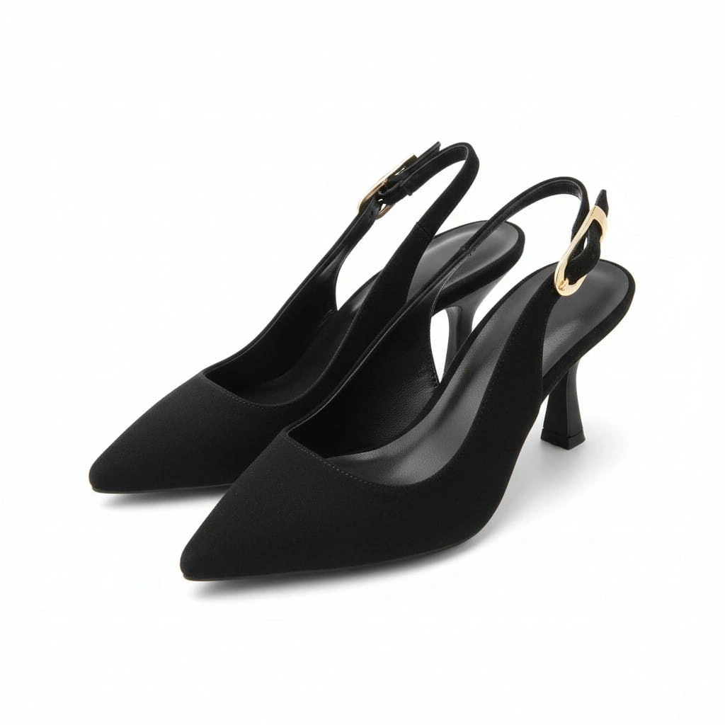 EFW Sivri Burun Siyah Süet Alçak Topuk Kadın Ayakkabı