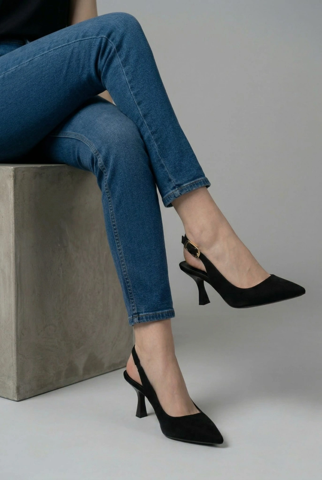 Cianna Önü Kapalı Arkası Açık Lastikli Klasik Topuklu Süet Siyah Ayakkabı