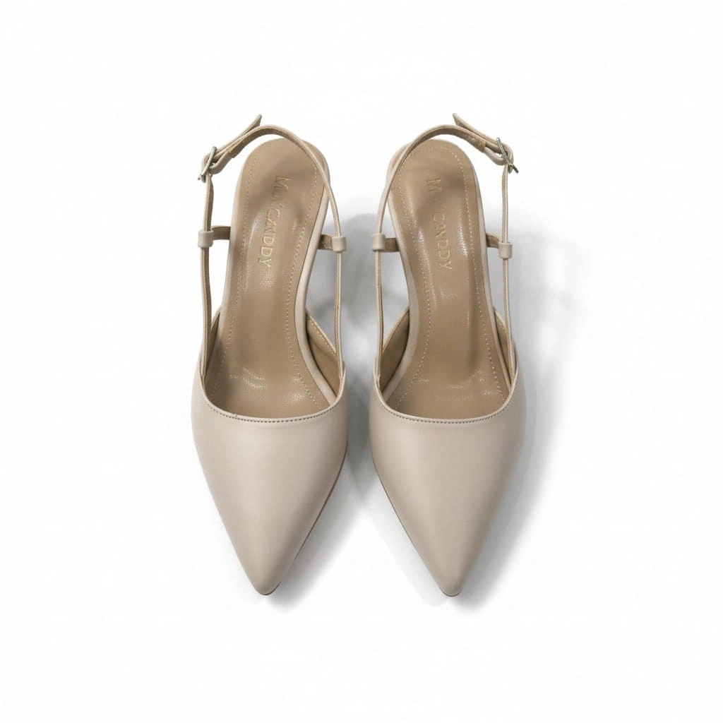 EFW Sivri Burun Bej Cilt Kemerli Kadın Ayakkabı