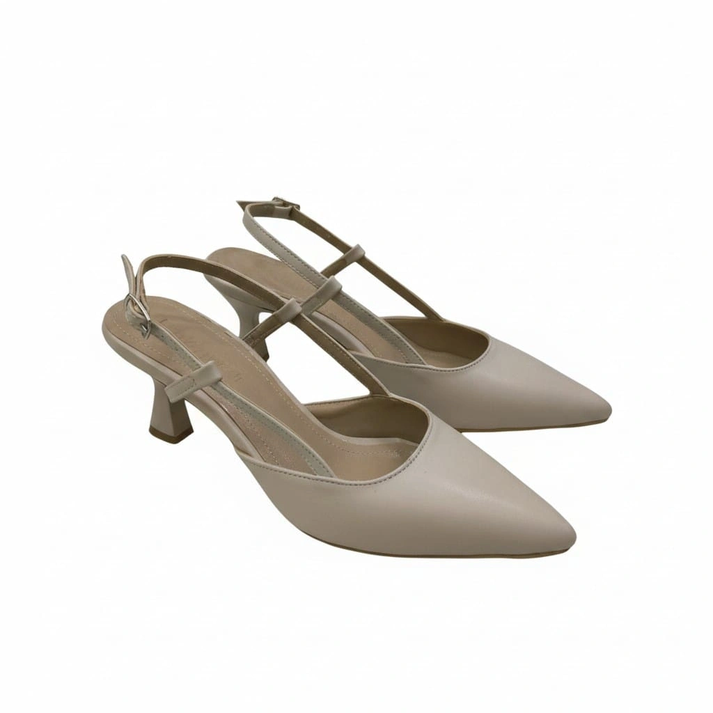 Cianna Önü Kapalı Arkası Açık Lastikli Klasik Topuklu Krem Ayakkabı