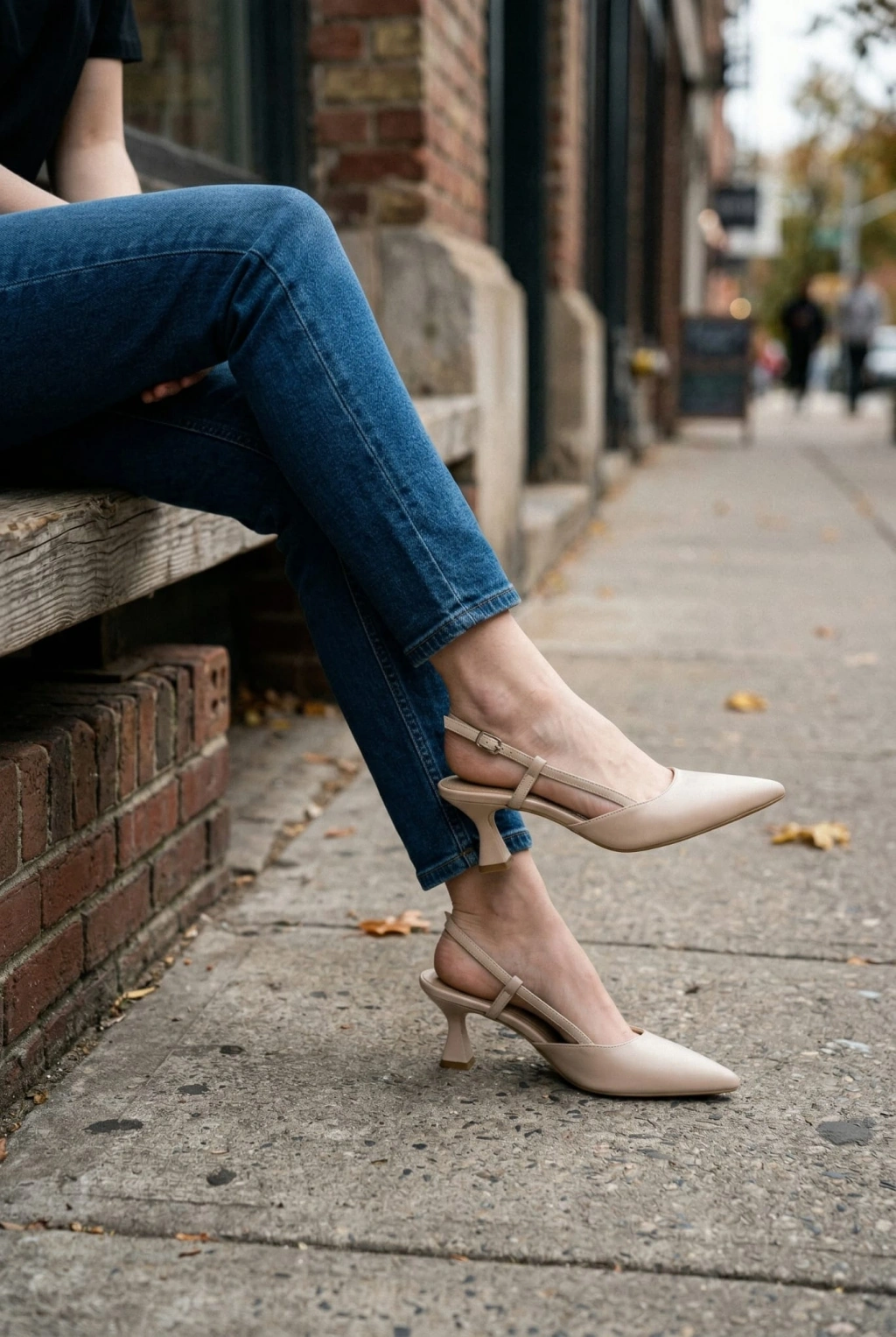 EFW Sivri Burun Bej Rugan Kemerli Kadın Ayakkabı