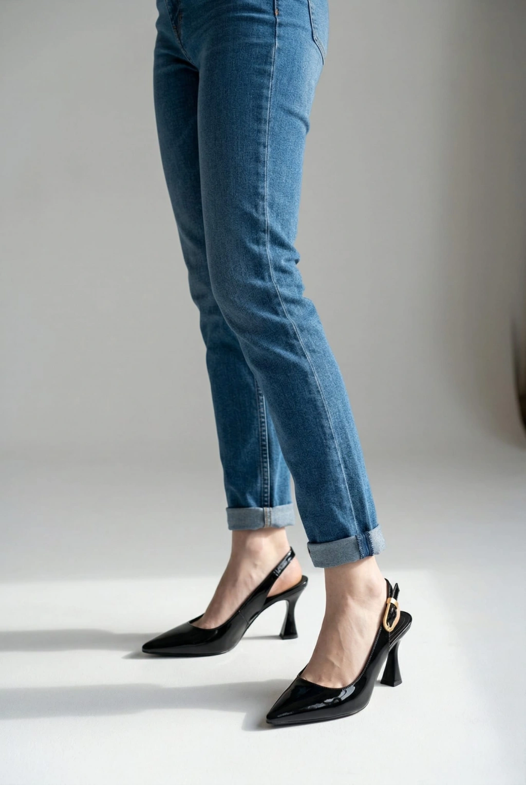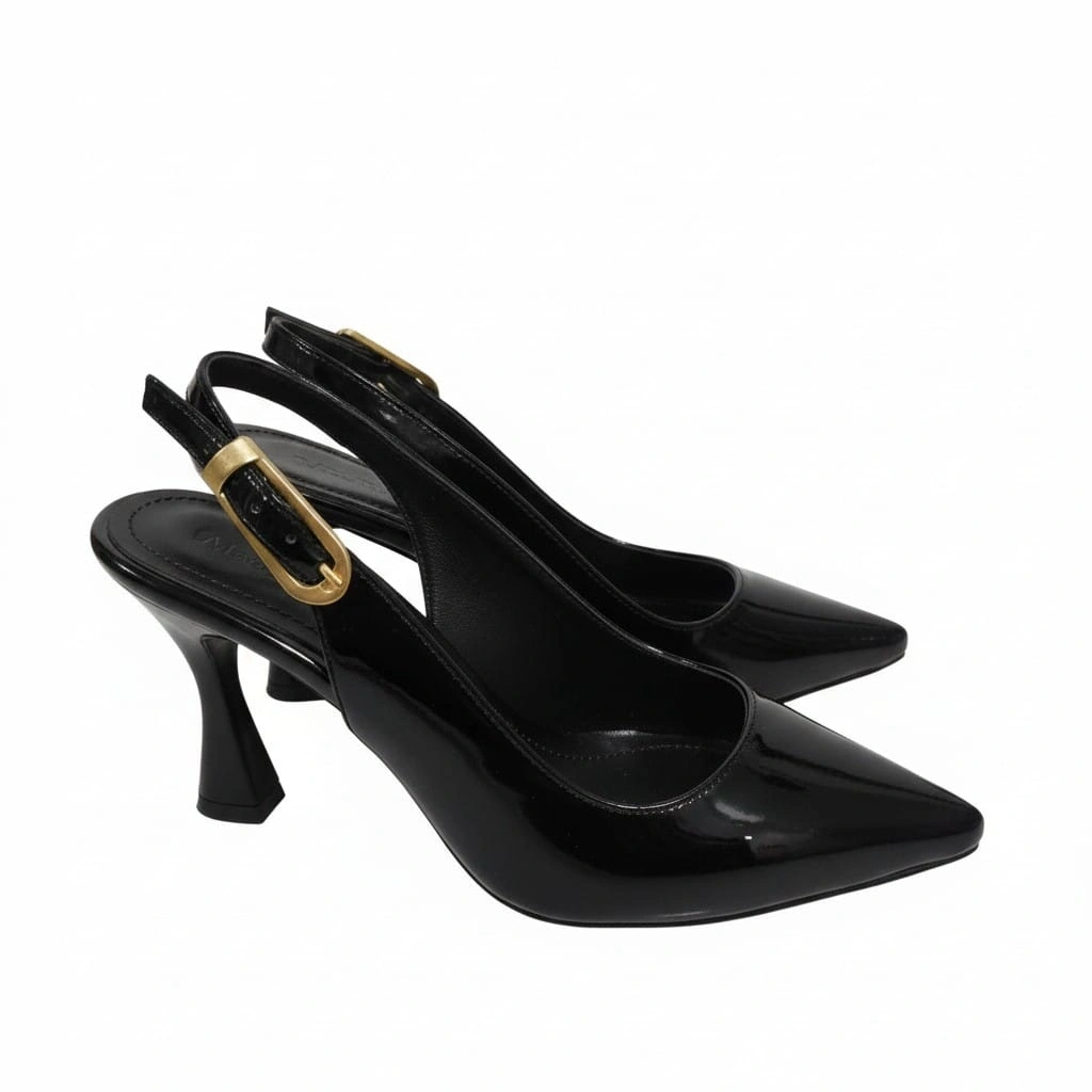 EFW Sivri Burun Siyah Cilt Kemerli Kadın Ayakkabı