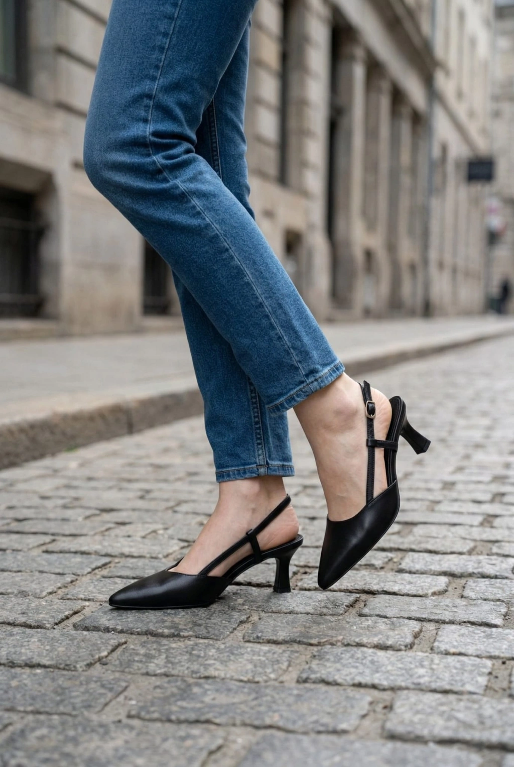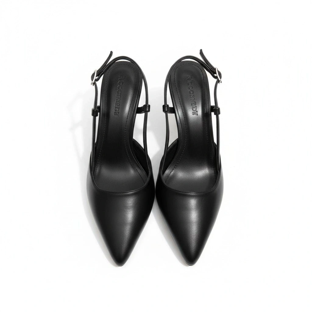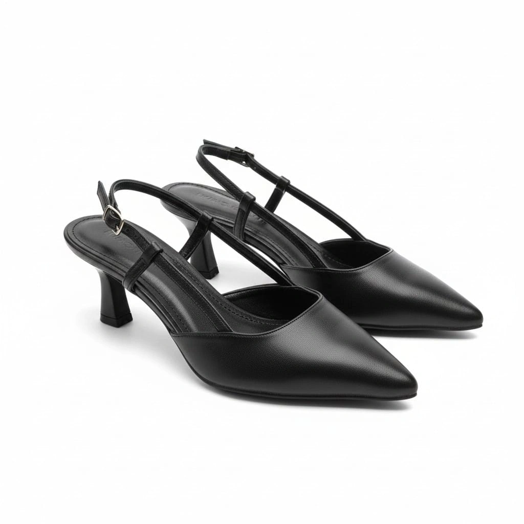 EFW Sivri Burun Siyah Cilt Kemerli Kadın Ayakkabı