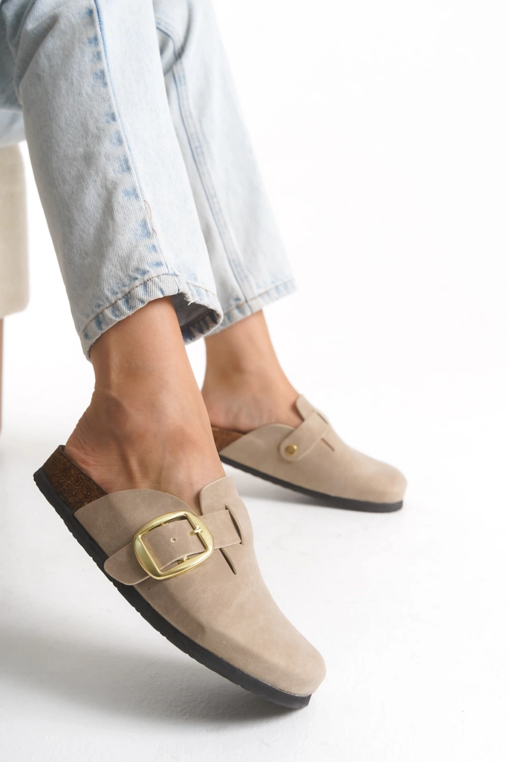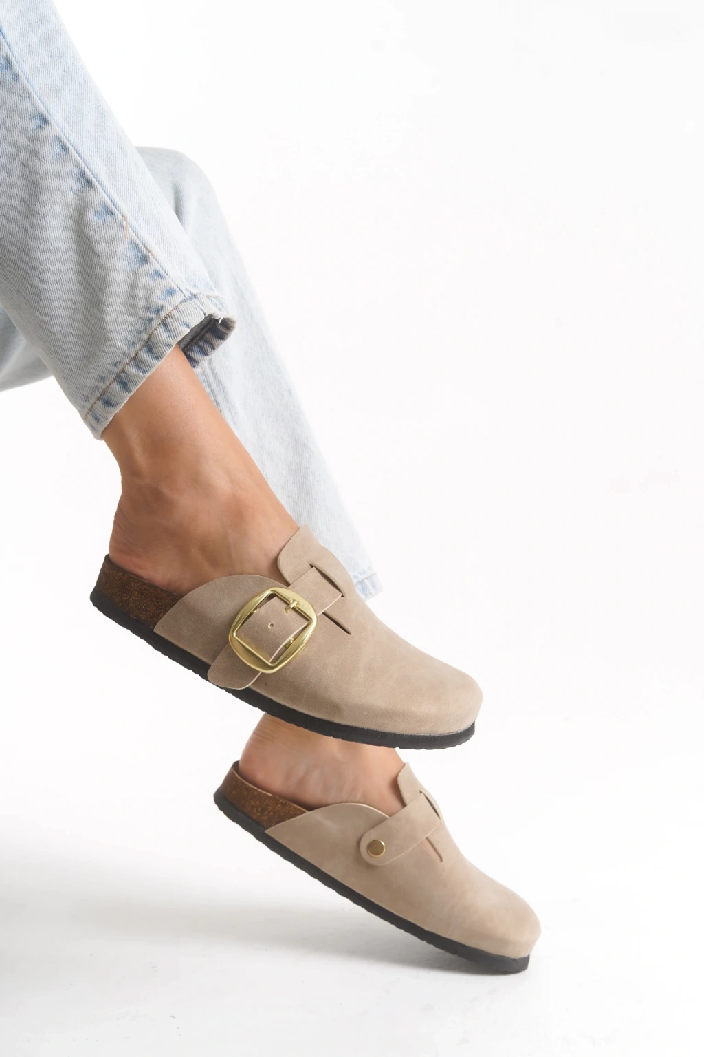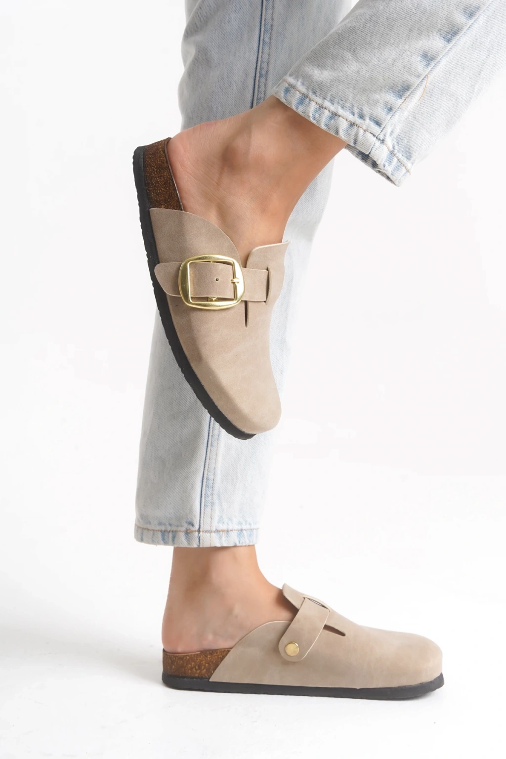 Kadın Mantar Taban Kışlık Önü Kapalı Sabo Günlük Rahat Bej Troklu Ev Terliği 1 Beden Büyük Tercih Ediniz.