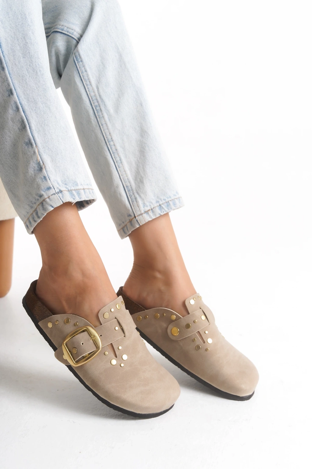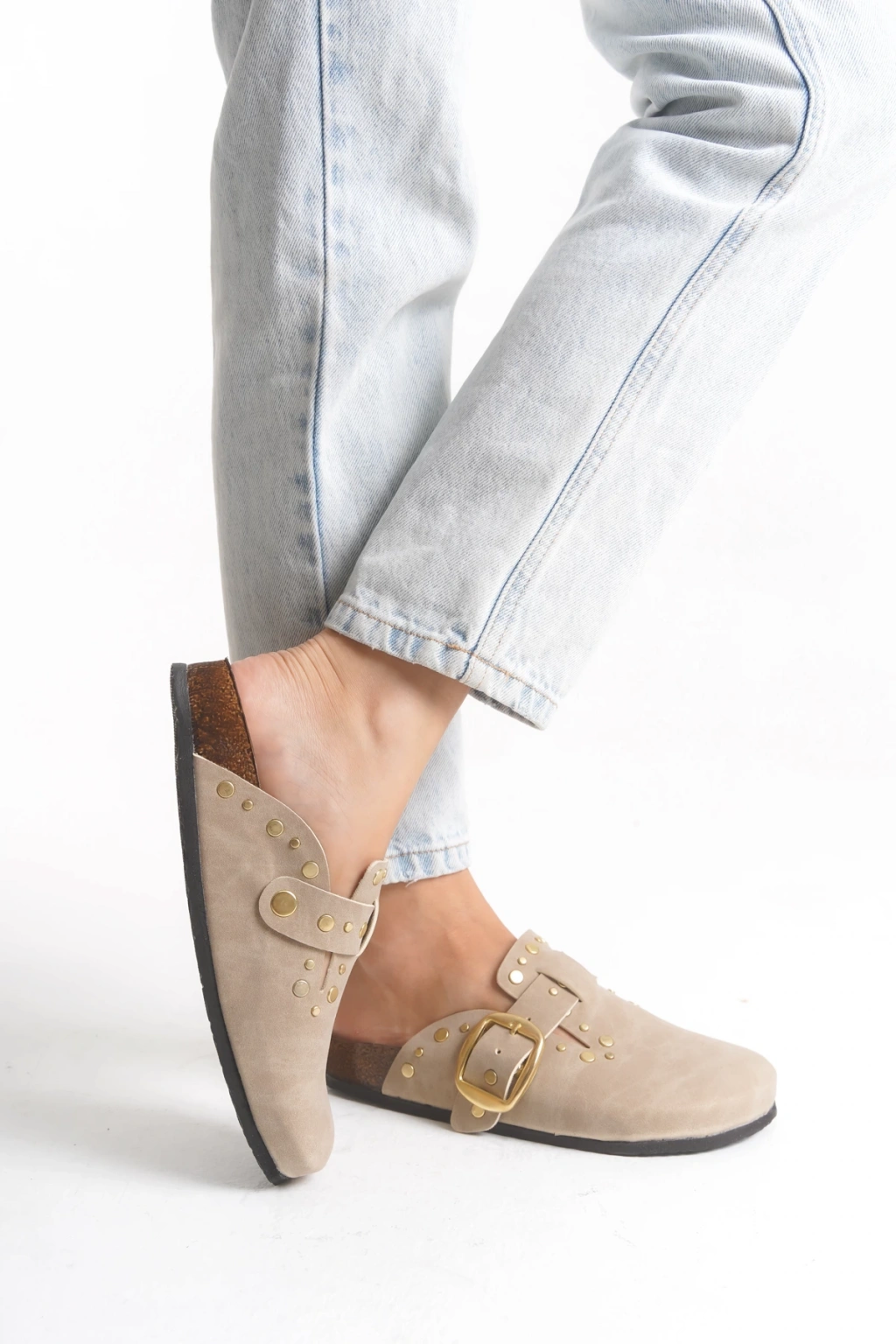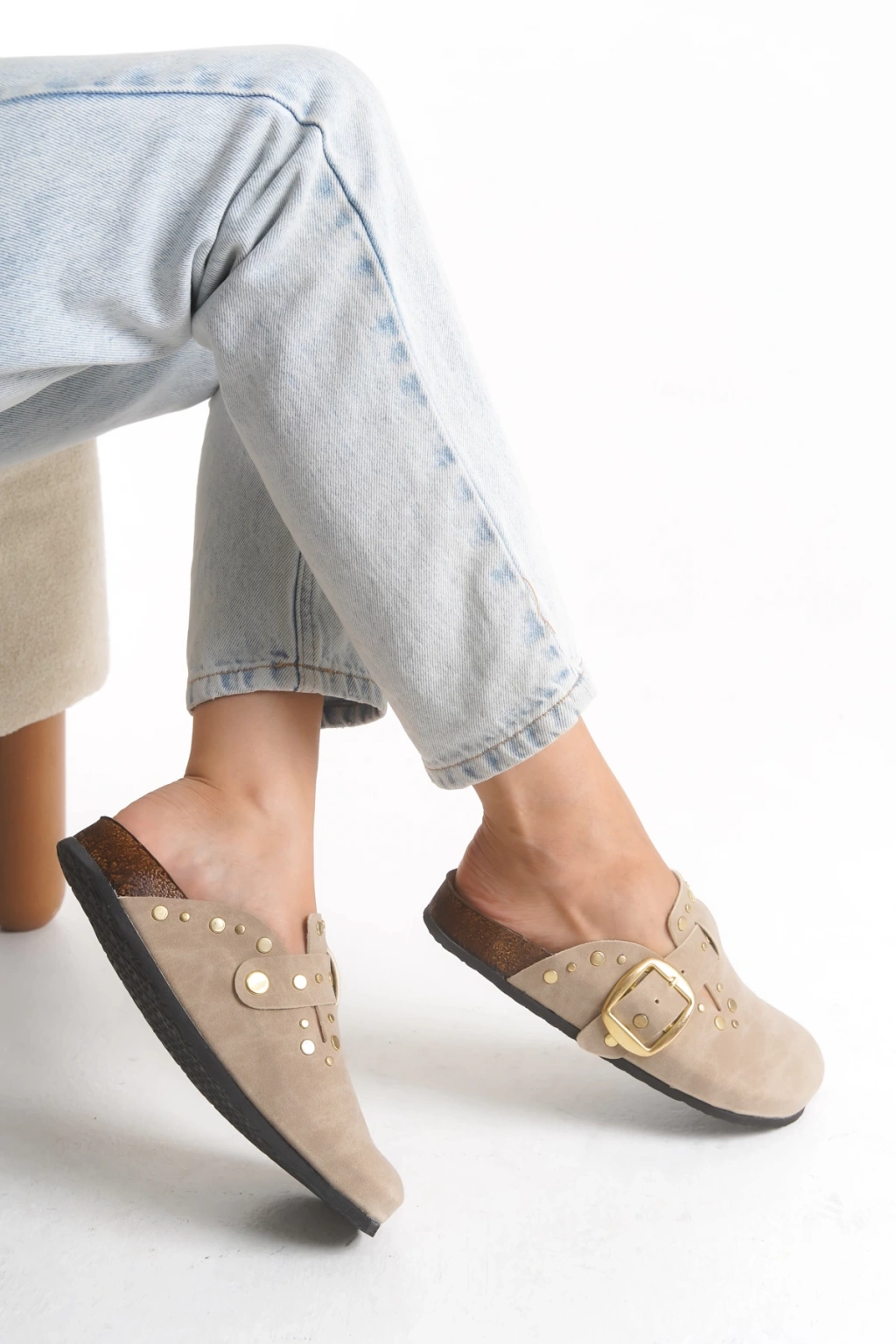 Kadın Mantar Taban Kışlık Önü Kapalı Sabo Günlük Rahat Bej Troklu Ev Terliği 1 Beden Büyük Tercih Ediniz.
