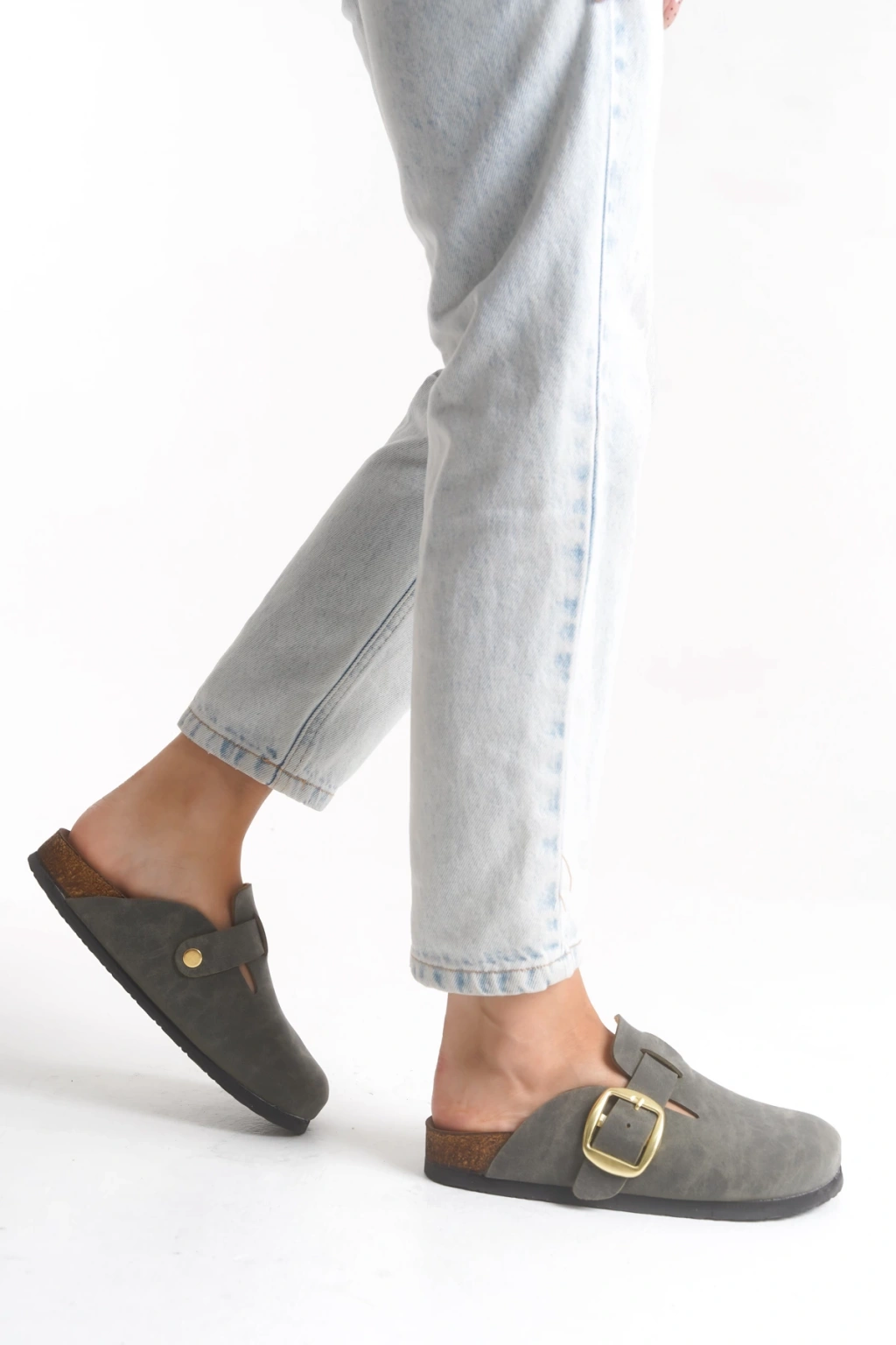 Kadın Mantar Taban Kışlık Önü Kapalı Sabo Günlük Rahat Haki Troklu Ev Terliği 1 Beden Büyük Tercih Ediniz.