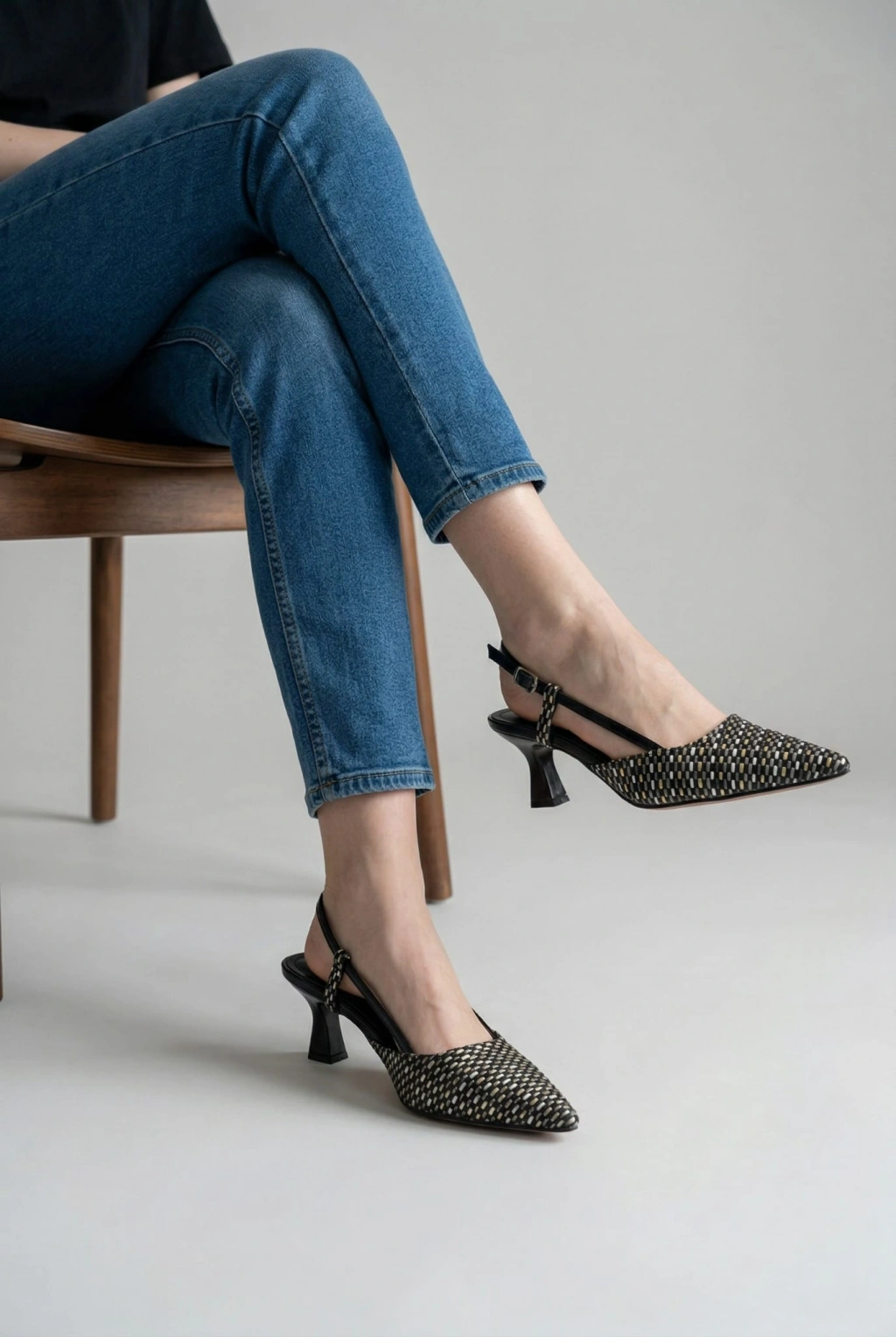 Chiara Sivri Burun Zebra 5 cm Topuklu Kadın Siyah Ayakkabı