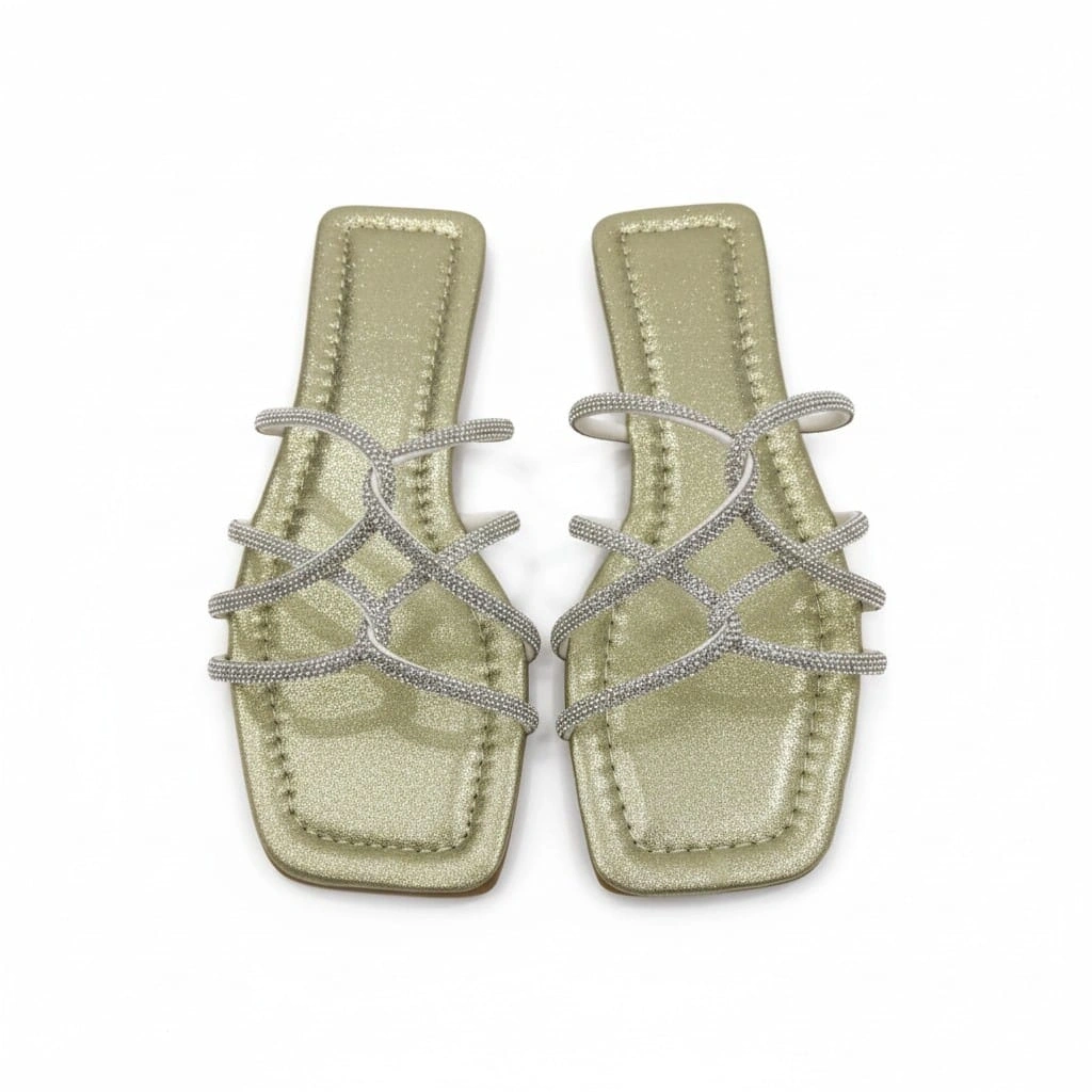 Örümcek Taşlı Platin Kadın Terlik