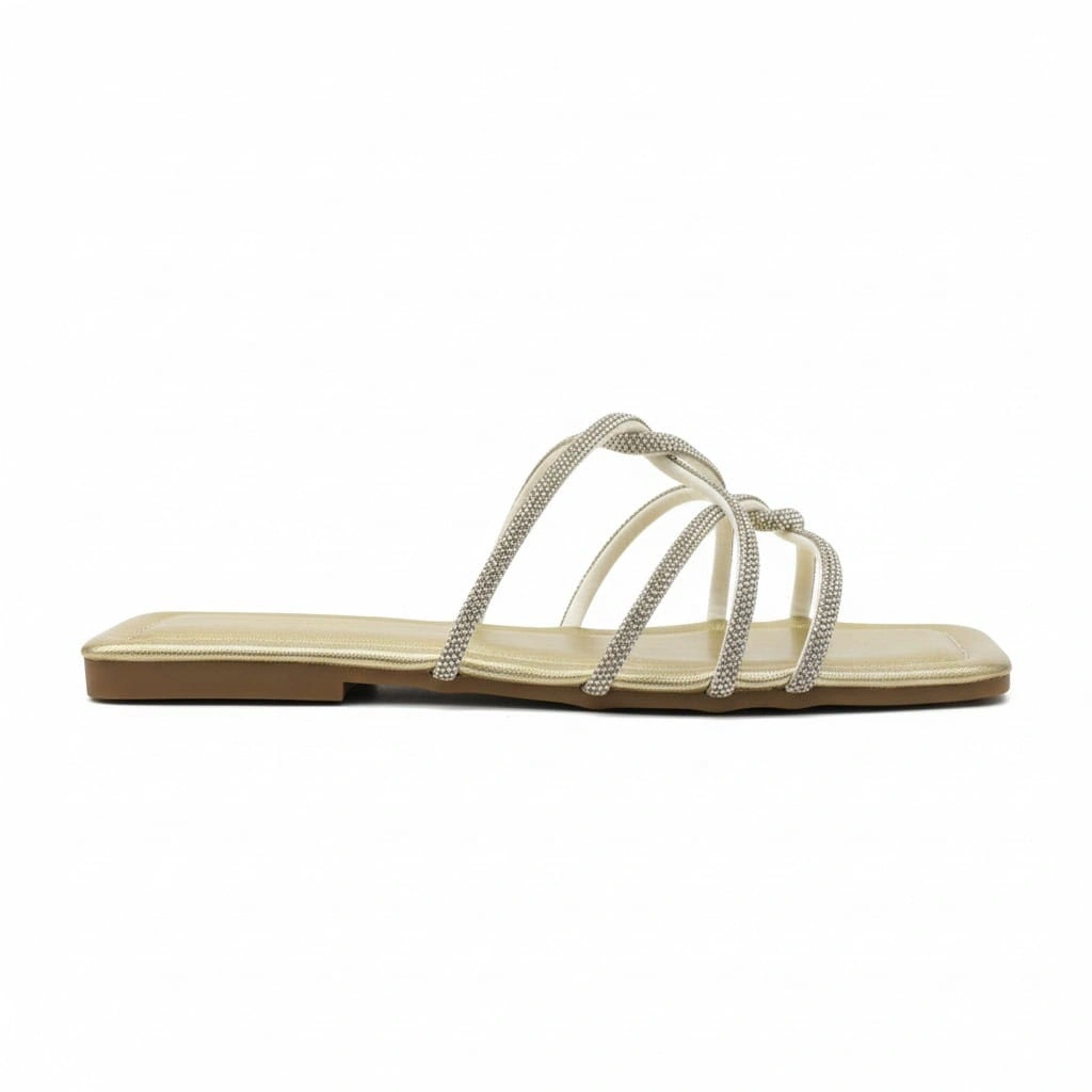 Örümcek Taşlı Gold Kadın Terlik