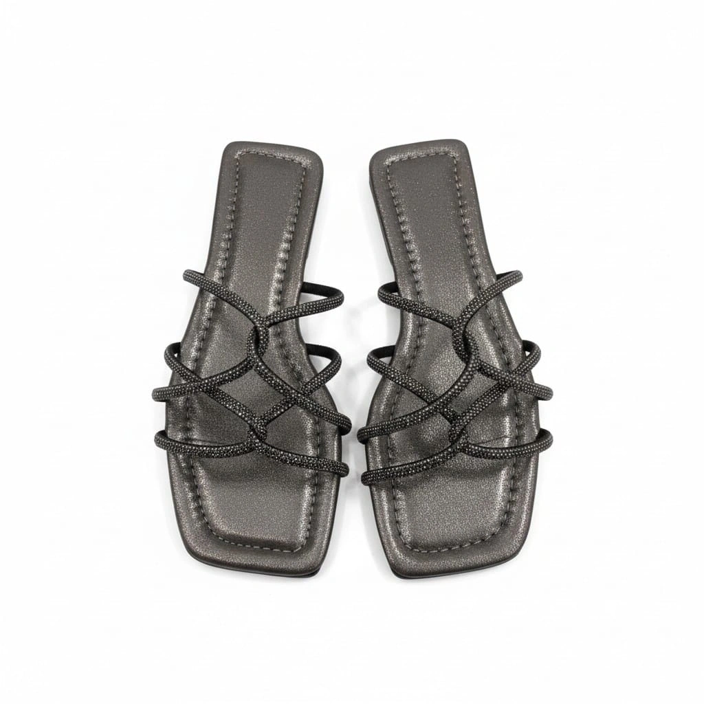 Örümcek Taşlı Platin Kadın Terlik